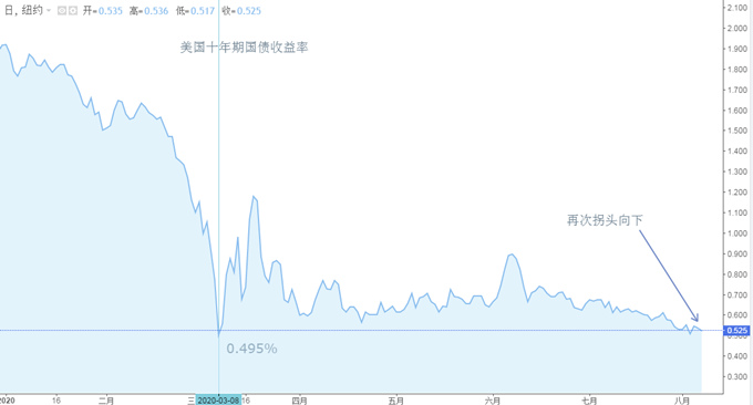 美债收益率是美元指数走势的最重要决定性因素,本周美债收益率再次下行,几乎要突破3月份,代表当前市场避险情绪依旧浓厚。与美债相反的是美股,纳斯达克指数已经上破11000,这让人感觉美国的企业经营环境并没有特别恶劣。笔者看来,美股的上涨是货币超发所营造出来的假象。一旦美联储开始紧缩货币政策,美国将迎来史无前例的大跌。总的来说,债券收益率上涨,才是经济周期由衰退转为复苏的关键信号,而股市只是风险资金盲目涌入的蓄水池,并不是经济的晴雨表。