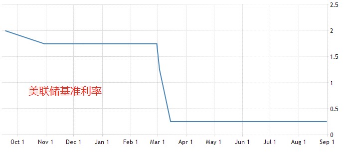 国债收益率是美元指数变动的根本原因,如果债券收益率没有大幅上升/下降,美指也不可能出现大行情。观察上图可以发现,美债收益率在9月份一直维持在0.7%附近,最低0.615%,最高0.729%,变化幅度相当小(11个基点)。由此可见,美元指数在9月份不存在大幅涨跌的基础。
