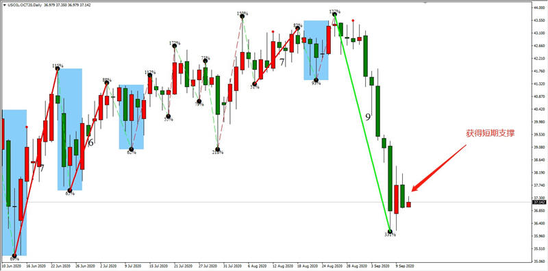 原油大跌,近几日获得短线支撑,最低点36.1美金。当前还不能确定该低点是否能够守住,从市场情绪来看,大概率还有一波短线下跌试探该支撑位,计划买入的交易者不可操之过急。V型反转出现的概率非常低,上文所提到的库存数据不支持V型反转的观点。