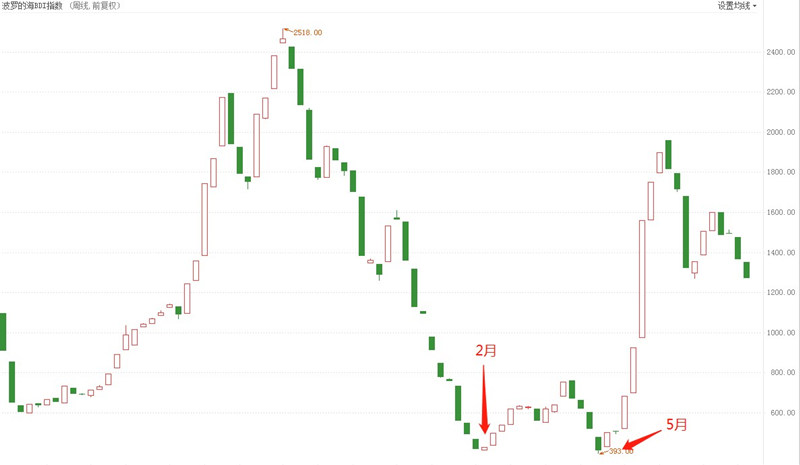 新冠肺炎还在欧洲和美洲肆虐,部分国家和城市还在执行居家隔离政策,经济活动依旧受到抑制。波罗的海干散货指数BDI能够显示航运活动的活跃程度,如果指数上涨,代表经济活动回升。BDI指数在2月份和5月份形成两个低点,构成双底结构,代表经济低迷期在5月份就已经终结。短期来看,BDI处于回撤状态,支持了原油延续下跌的观点。但是,当BDI下探到支撑后,经济活动回升,油价将迎来中期的上涨。
