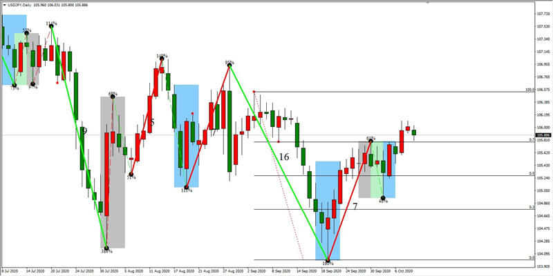 9月份对USDJPY的走势判断为:空头趋势,反弹完成后将开启新一轮下跌。当时的重要支撑位在7月31日低点104.1 ,9月21日向下突破了该支撑,但收盘后没有实现有效突破,反而大幅反弹。10月2日形成次低点104.9,结构上呈现出多头回撤勾形,延续空头的概率大大降低。纯技术角度考虑,USDJPY短期应当以看多为主,中期依旧处于震荡区间之内。