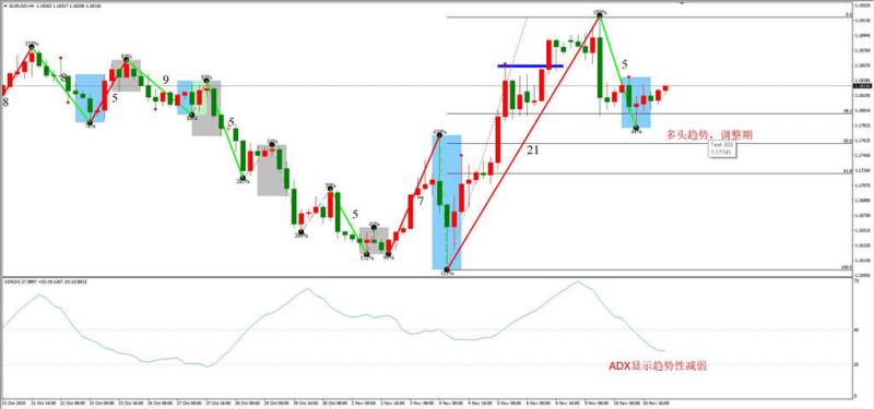 图1,EURUSD 11月11日 H4级别