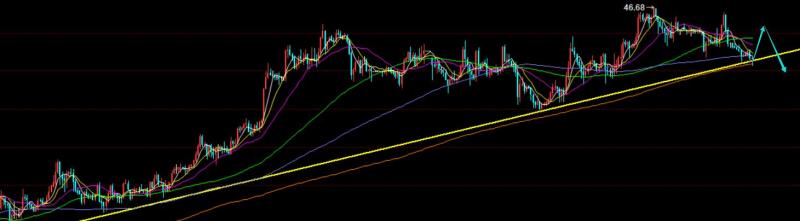 原油方面: 昨日符合预期,依托45.3支撑看涨,目标46.4到位;而收盘前冲高走跌,就说明46.5-46.6暂时成为短期的双顶,阻力存在,那么日内反抽46及上方都可以尝试高空;当前价格处于趋势支撑线徘徊,若45无法支撑住,或许或考虑提前安排做空;反之,守住45,则会短线反弹一波,拉高再受阻回落,操作上,建议拉高空为主,一旦调整,靠近日线中轨43.5一线计划逢低多;