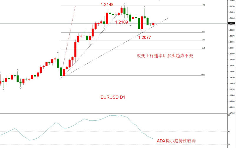 勾形理论观点:前期支撑位1.2109已经被突破,符合逾期。新的支撑为1.2077,处于50%分位附近,从比例上看已经实现充分回调。但从最新的上涨波段来看,又是上影线又是长阴线,表明上行动力不足,未来行情还将出现纠结,不会一举突破前期高点。