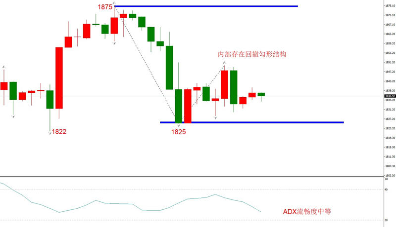 勾形理论观点:阻力位1875美元,下方支撑1825美元,内部存在回撤勾形结构。左侧下跌波段较为流畅,右侧反弹波段表现较为纠结,未来展开震荡行情的概率较高。但才能够内部结构来看,还是倾向于看空。