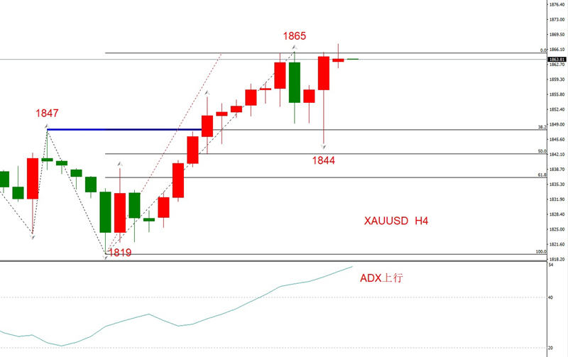 勾形理论观点:当前为回撤勾形,左侧波段持续14根K线,右侧最大回调幅度50%,最新支撑位1844,最新阻力位1865。阻力位已经被最新上涨波段触及,存在两种情况,第一是在1865之上直接上涨;第二是再次出现下跌波段,突破1844并形成N形结构之后再次上涨。