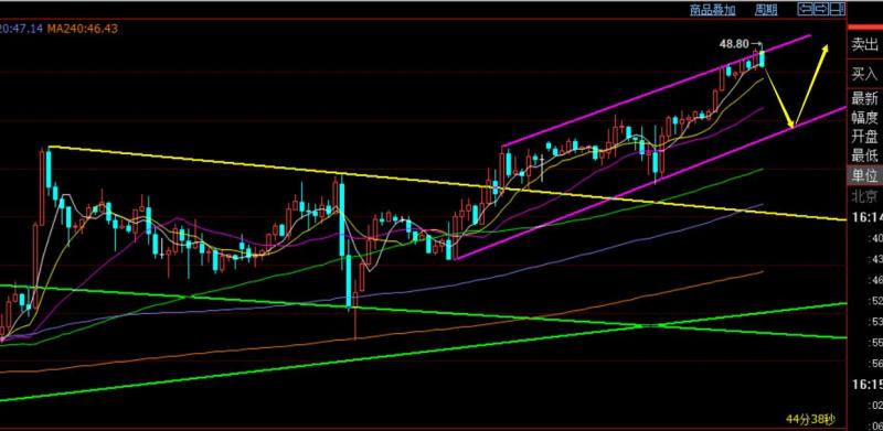 原油方面: 周线中期级别,连阳发展,维持看涨;短线日线级别,一直守住10均线无法下破,也保持看涨,操作上,只要跌一波都是做多机会,和金银是一样的看法,单边持续的走高; 建议47.6支撑上方,逢低多,目标50关口;