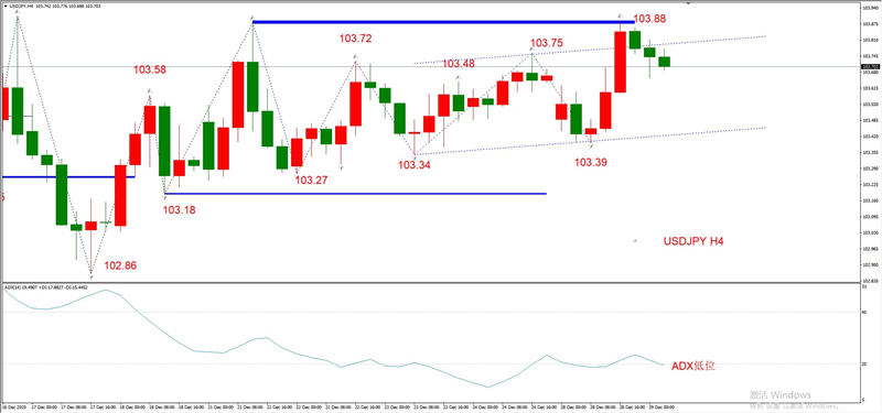 勾形理论:依旧运行在大的震荡区间之内,并且波动率在不断降低,目前没有参与的价值。日线级别日元也是处在低波动率状态,预计较长时间内都没有买卖信号。市价103.70,前期上涨波段已经触及阻力位,但没有有效突破。即便有效突破,也不认为未来将会出现大幅上涨,因为日线的震荡始终对四小时行情存在压制作用。