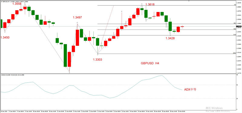 勾形理论:最近回撤勾形1.3303~1.3618~1.3428相对健康,左侧上涨波段持续时间够长,倾角也够大;右侧回撤波段幅度偏大,最高触及了61.8%分位。未来很难出现大幅度上涨,预计将会在1.3618附近受到压制,同时该价格也是新一轮上涨的目标位。由于回撤勾形不够稳固,预计该目标位很难达到。