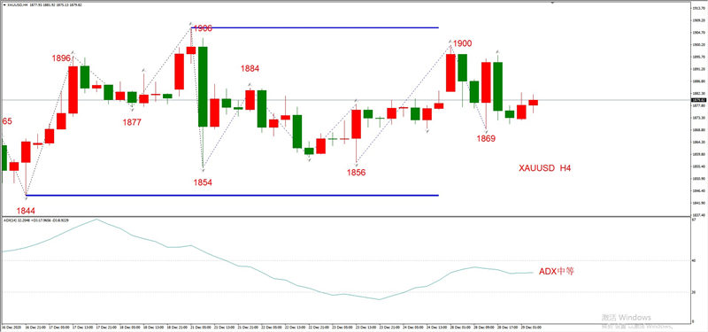 勾形理论观点:震荡区间之内,上方阻力位1906美元,下方支撑位1844美元。由于日线级别回撤勾形上攻失败,预计未来还将维持震荡。