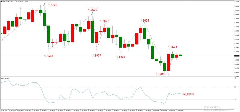 最新勾形1.3634~1.3450~1.3534,回撤勾形
