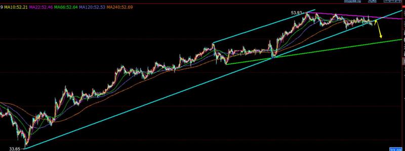 原油方面:昨日美盘初和金银一样,都出现一波急速大幅拉升,这个是因为疫情刺激下,金银油包括美股,都是同步发展的,出现拉升是因为疫情缓和;而凌晨后冲高走跌破新低,是技术上趋势压制,本身周线和月线压力存在,一波下跌调整也是预期之中;本周指出53.55具有趋势阻力,刚好触及后回测,当前会有所破位趋势支撑,短线或进一步的走跌,建议52.7及上方空为主,看51.5,破位减仓持有;