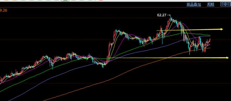 原油方面:日线连阳强势上涨延续,最高触及62.2美元, 随后冲高回落短期修正,下探至58.5一线,当前步入一定区间整理;月线级别,刺破了61关键的长期趋势线压力,需等本月收盘才能明确突破情况;中期周线维持单边看涨延续中,短期日线处于大涨后的短期回调修正,阻力关注60.8,属于高点回落的618分割阻力,支撑58.1-58.2,处于前期大涨回调382分割支撑,这两个位置是本周上下突破得失引出后续方向的关键,等靠边再去参与短线的多空操作;