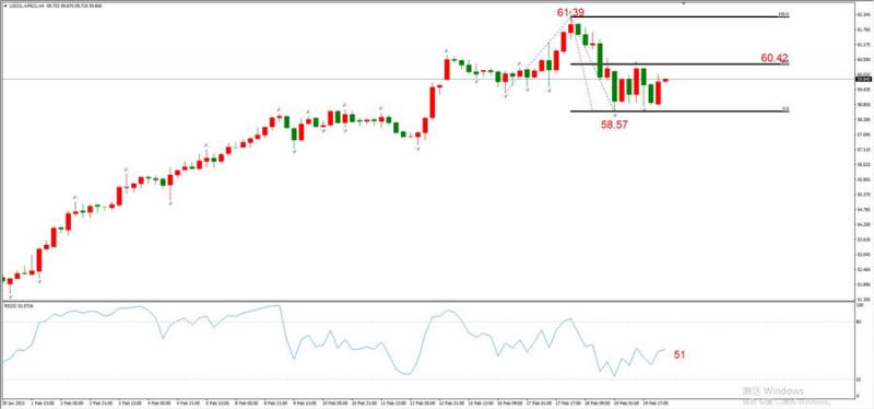 最新勾形61.39~58.57~市价,回撤勾形