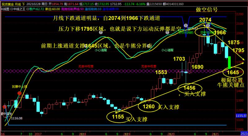 周五美联储集体讲话宽松继续,其实这些都是掩饰,市场依然不买账,毕竟基本面好于预期,而且10年期国债收益率继续上行,虽然1.9万亿宽松达成,但是这些都是大选前知道的消息无非走个形式过程,当真到鞋子落地那就是利多出尽是利空,所以股指开启冲高回落,黄金跳空缺口也是当日回补,显然这是弱势横盘震荡走势,如果强势一定在缺口上横盘整理三日以上,目前没有直接回补缺口,那么如果早上跟风追多做多都是一地鸡毛,所以交易必须提前蛰伏,现在既然1708上做多都是损或者套,那么现在欧盘和晚上才会借助缺口下再次震荡,周五连续几次1705的反弹高点成现在压力区域,也即是说如何欧盘和晚上不能收复这里,那么继续震荡下跌筑底开启,而且月线自1155上涨通道支撑1640区域,去年三月1640带1765横盘整理下轨也是这个区域支撑,综合这些可以看出多空牛熊分界点在1640才有大的反复行情和中线机会,既然缺口回补,技术很多看到这里,给你参与就是坑,那就是说在缺口下惯性10到15美金以后再去考虑博弈短多,也就是说在1685区域可以博弈,而且1640上还有一个比较关键点1670个人看好这里有大反弹走势,所以现在就是挂单1670.8多和1640中线多布局等待。当然第一次触及缺口反弹如果不能收复1703暂时放弃多等反弹继续做空。综合上述操作思路如下: