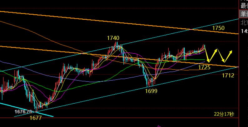 操作上:黄金1741作为防守,反弹先尝试高空一次,目标1724-25,破位减仓持有; 低多好的位置依旧是1712逢低位置,能给到再考虑跟多一次,给不到也保持逢高短空; 若突破1740拉升一波,那么1750-52附近再去计划空一次即可;
