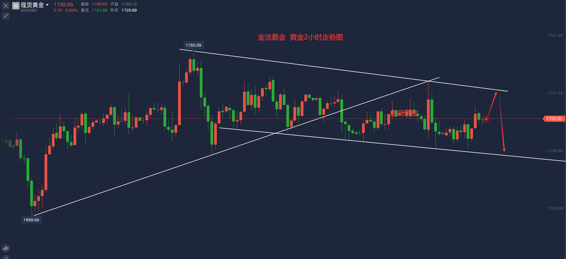 进场点:1750附近,止损点:1760,止盈点:1730~1710