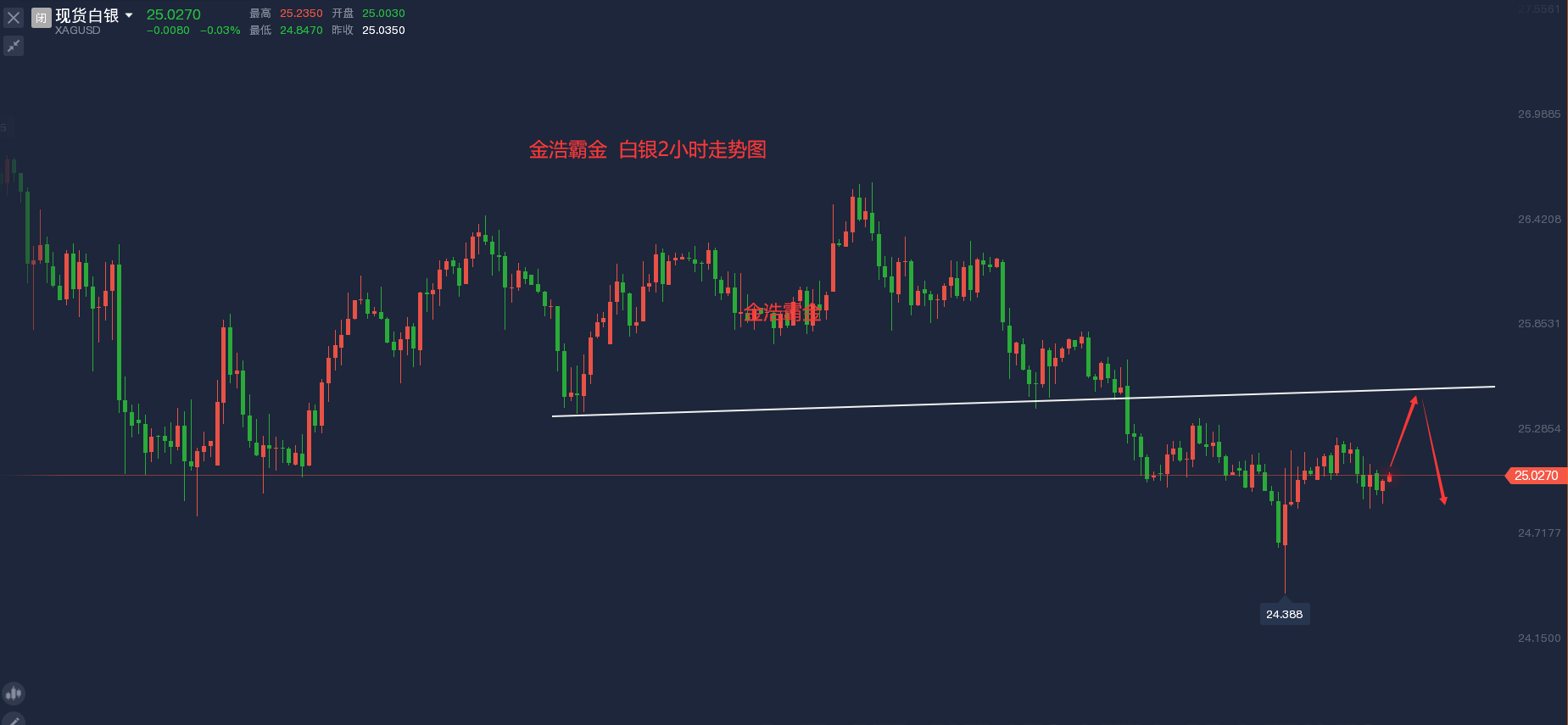 进场点:25.4附近,止损点:26.0,止盈点:24.4~23.5