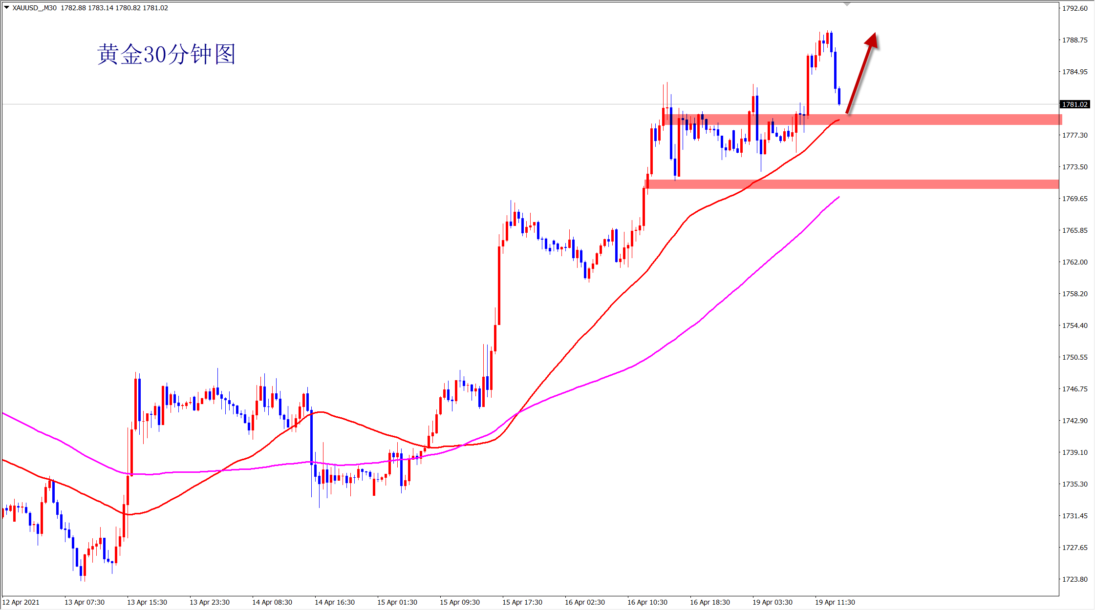 黄金今日小横盘后再次拉升,我们1775多,1782多也是如期大涨止盈!当前行情短线遇阻1790后回落,但多头走势不变,回落又是干多机会,美盘1775附近继续多!