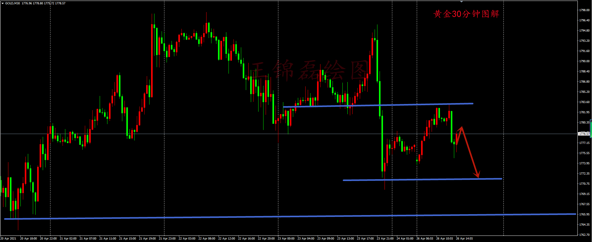 黄金继续维持1783附近空,止损1790,目标1770-1760(仅供参考,并不构成实际入场点位)