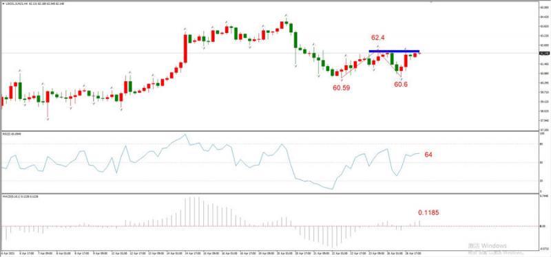 图5,USOIL 2021年6月合约,04月27日 H4周期