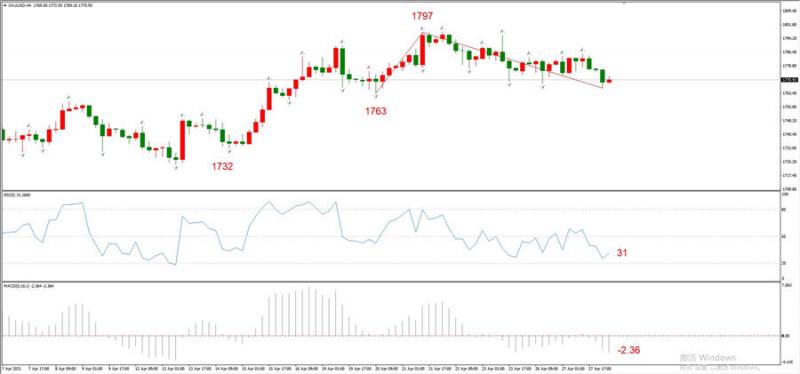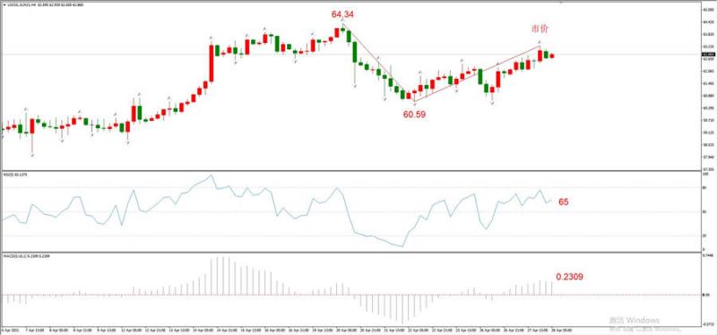 图5,USOIL 2021年6月合约,04月28日 H4周期