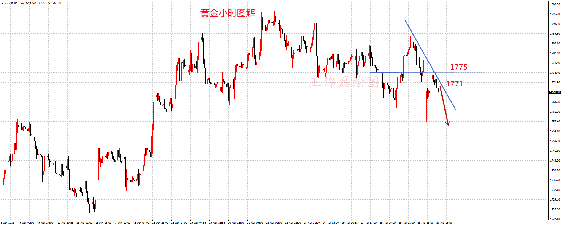 交易策略上锦磊建议:黄金1772直接空,止损1780,目标看17601755