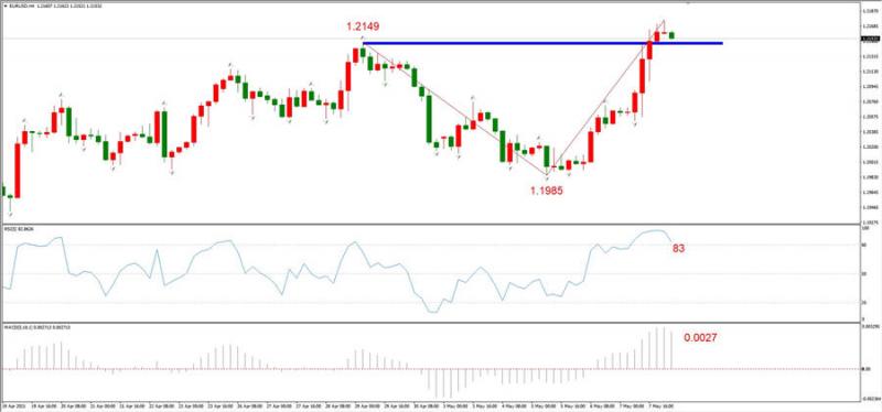 综合判断:预计将会在1.2149附近形成阻力位,未来回调概率较高,但预计回调幅度不会太大。