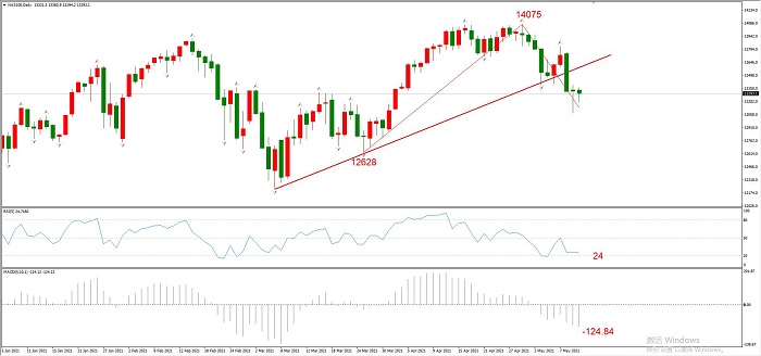 综合判断:跌破速率线,趋势转空,预计将进一步下跌,远期目标位12628。
