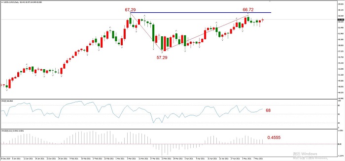 图3,USOIL 2021年6月合约,05月12日 日线周期