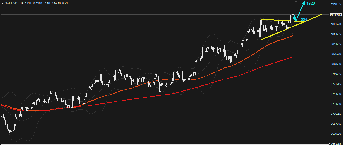国际黄金昨日美盘盘中扩大涨幅,强势突破1900关口,继续刷出1月8日以来新高,但没有收于1900大关之上。所以,笔者昨日1893空单认损离场。金价在没有突破1900关口之前,我们有理由放空,但在突破1900关口之后,放空的理由就没有了。所以,不破不立,破了就应当调整思路,放弃不该有的幻想。所以,黄金今日我们回撤干多。