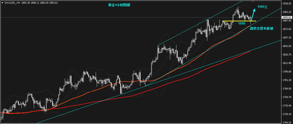 因此黄金美盘操作思路调整一下,回撤1888-86一线接回多单,目标看1900之上。