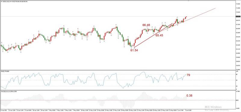 图3,USOIL 2021年7月合约,06月03日 H4周期