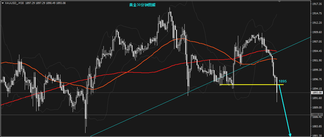 黄金反抽1895继续空,止损1904,目标看1886,1875