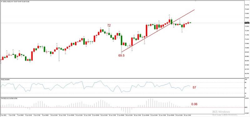 图3,USOIL 2021年7月合约,06月25日 H4周期