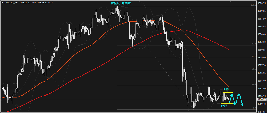 黄金反抽1785下继续空,止损1790,目标看1770,1760
