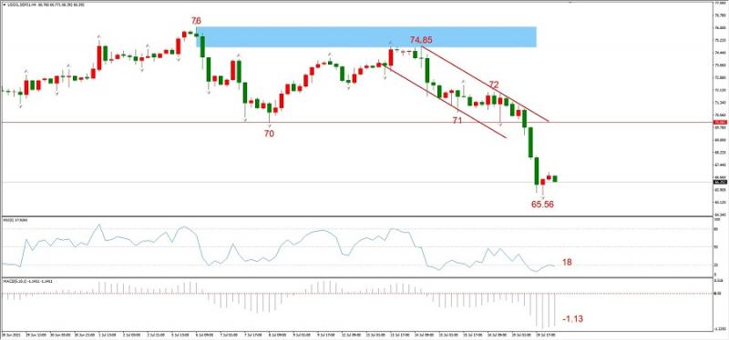 图3,USOIL 2021年8月合约,07月20日 H4周期