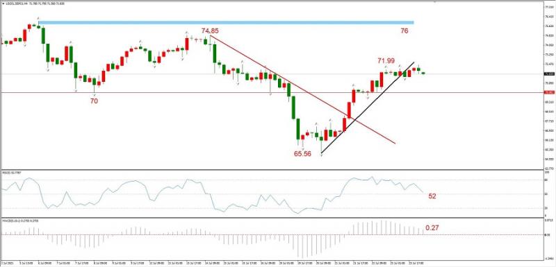图3,USOIL 2021年9月合约,07月26日 H4周期