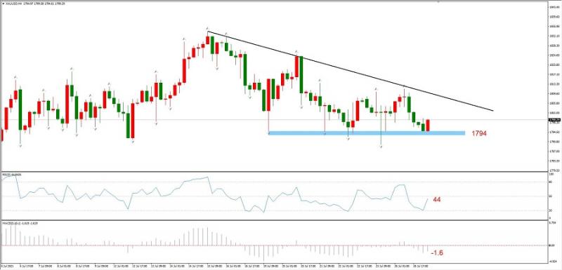 结构上看,市价处于1794支撑位附近,预计在周四美联储利率决议之前不会有效突破,最近两天震荡反弹概率较高