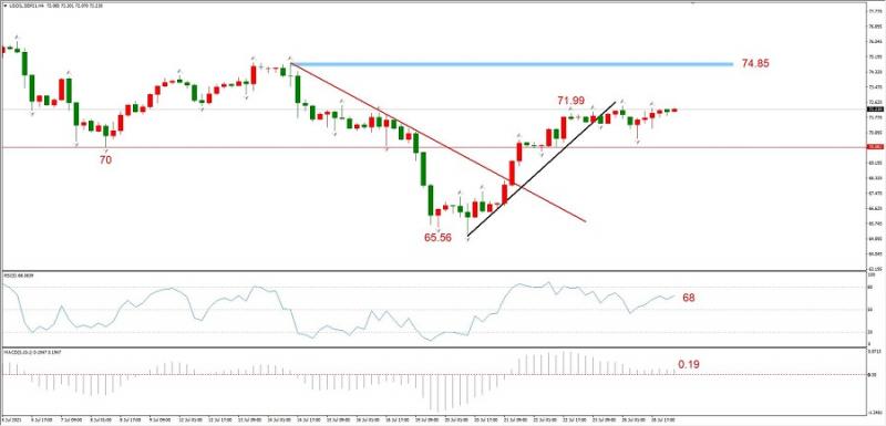图3,USOIL 2021年9月合约,07月27日 H4周期