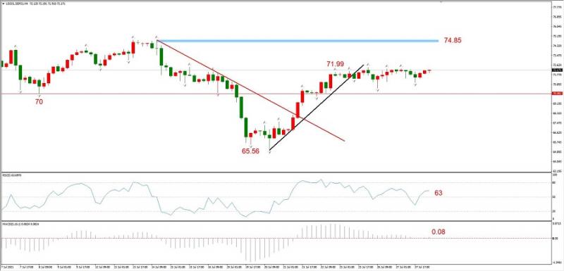 图3,USOIL 2021年9月合约,07月28日 H4周期