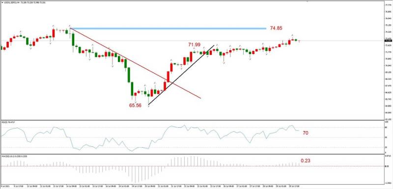 图3,USOIL 2021年9月合约,07月30日 H4周期