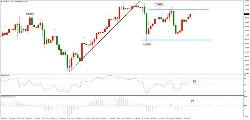 结构上,区间震荡特征越来越明显,上方阻力15086,下方支撑14787,目前处于下轨至上轨的多头波段。