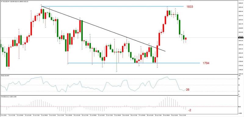 结构上看,上方阻力位1833,下方支撑位1794,目前处于上轨至下轨的空头波段;