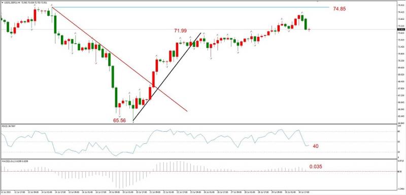 结构上看,中期阻力位74.85较难被突破,上周形成阶段性高点后形成顶分形阻力,预计本周将开启下跌走势。