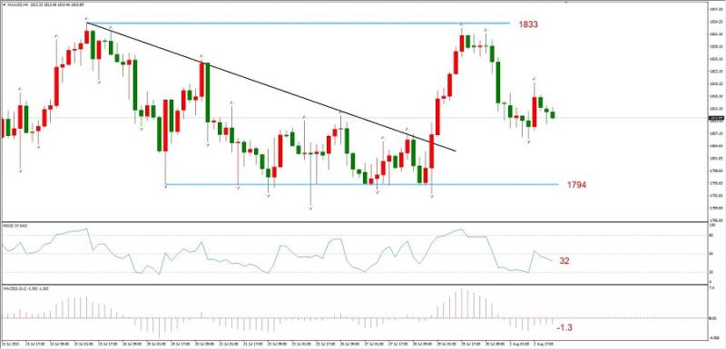 结构上看,上方阻力位1833,下方支撑位1794,目前处于上轨至下轨的空头波段;