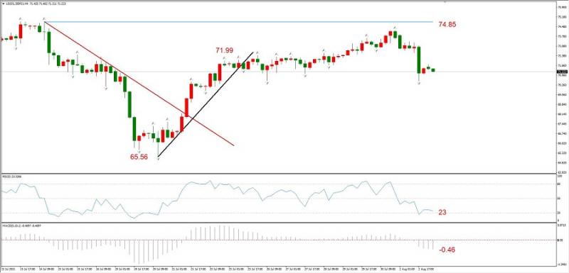 结构上看,中期阻力位74.85较难被突破,上周形成阶段性高点后形成顶分形阻力,预计本周将延续下跌走势。