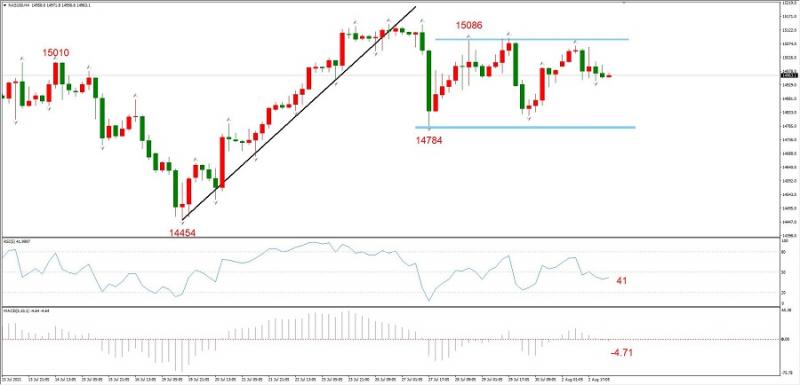 结构上,区间震荡特征越来越明显,上方阻力15086,下方支撑14787,目前处于上轨至下轨的空头波段。