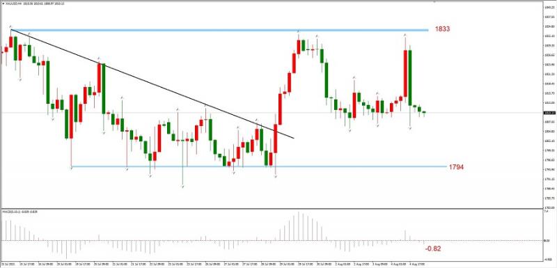 图2,XAUUSD 08月05日 H4级别