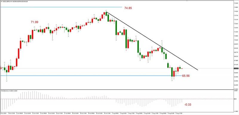 结构上看,市价触及65.56支撑后形成底分形支撑,后市看反弹,反弹最高点在下降趋势线附近。